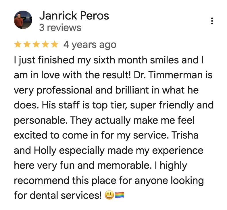 In his younger years, Dr. Timmerman had a summer job where he delivered retainers to various dental offices for the local orthodontic lab. This close proximity to dentistry eventually ignited a lifelong interest that developed into a viable career path – and the rest is history.